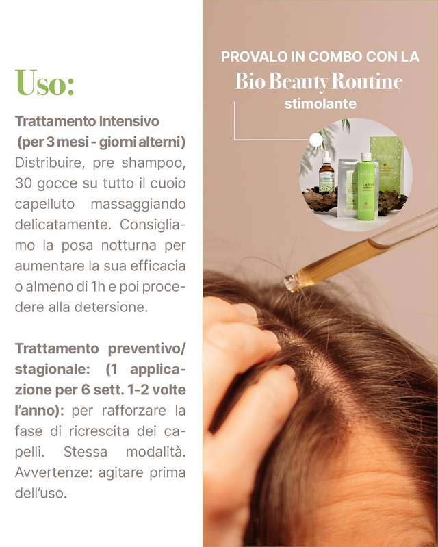 La lozione stimolante è un trattamento intensivo per il cuoio capelluto per combattere lo stress ossidativo e contrastare la caduta dei capelli ereditaria, ormonale, temporanea e diffusa. La chioma è visibilmente più folta e vigorosa.